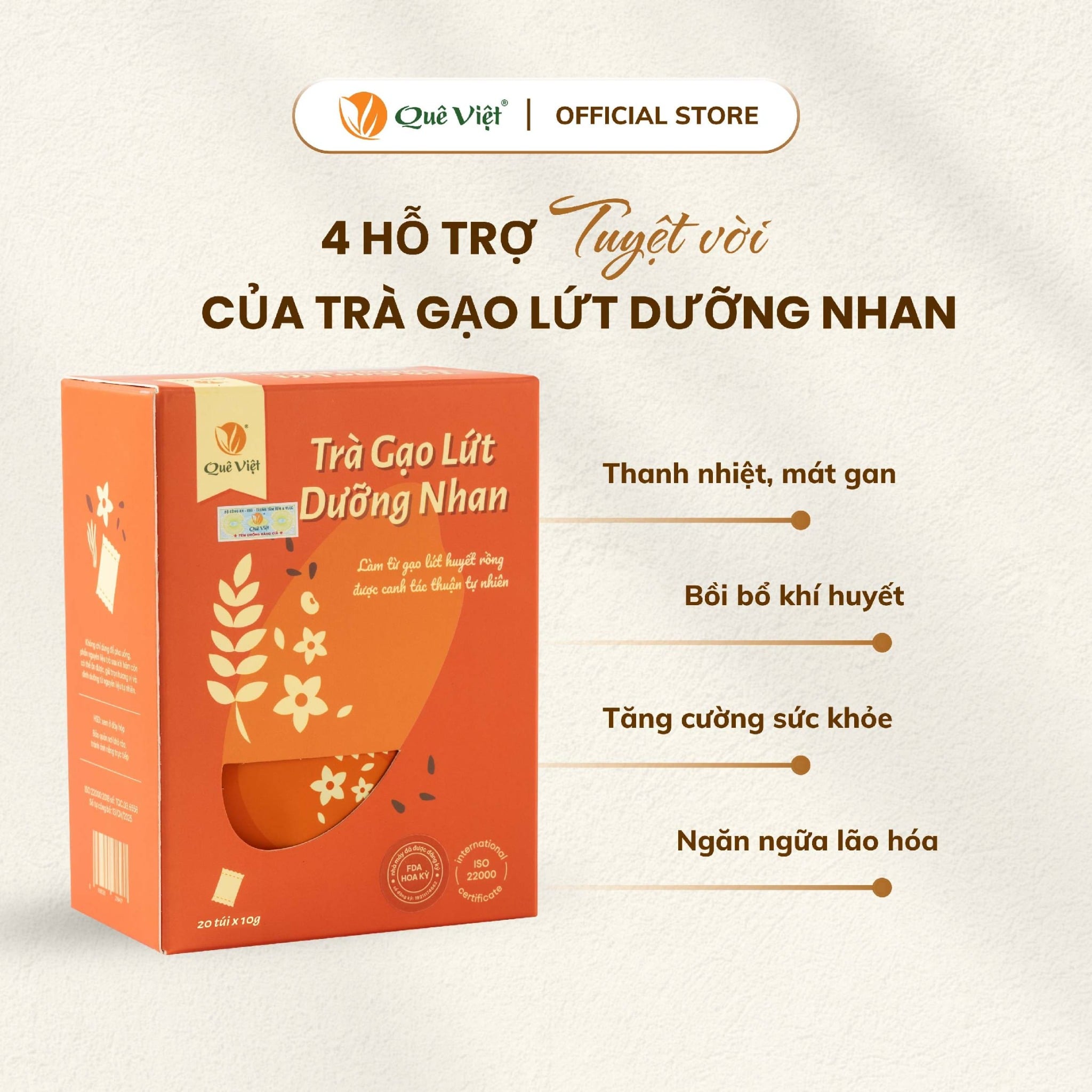 Combo 3 hộp Trà gạo lứt Quê Việt thanh lọc gan, giải độc cơ thể TẶNG 1 trà Good Lứt 150G - Hộp 600G, 450G
