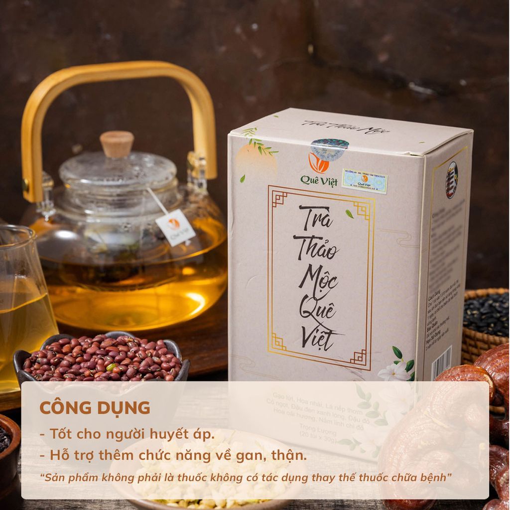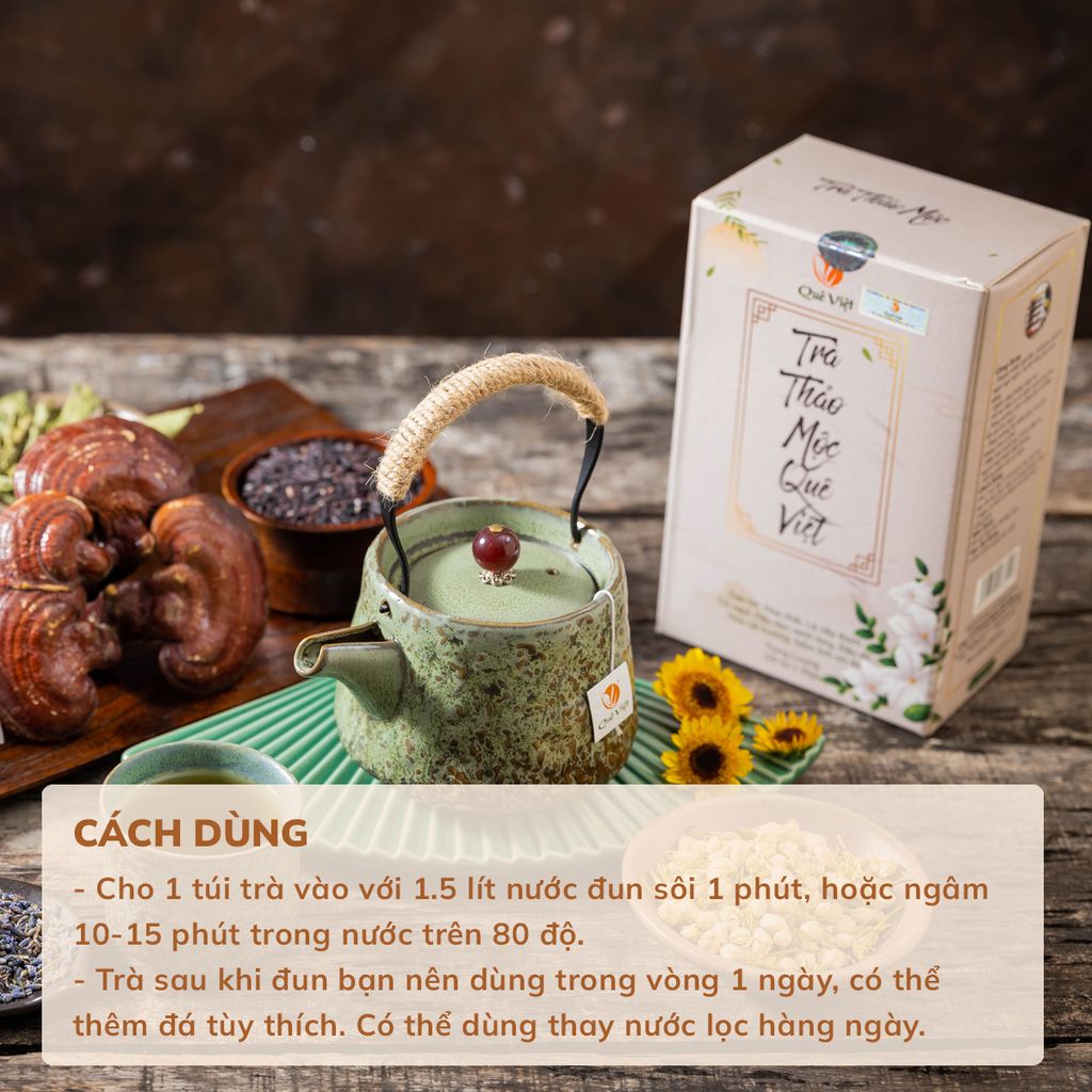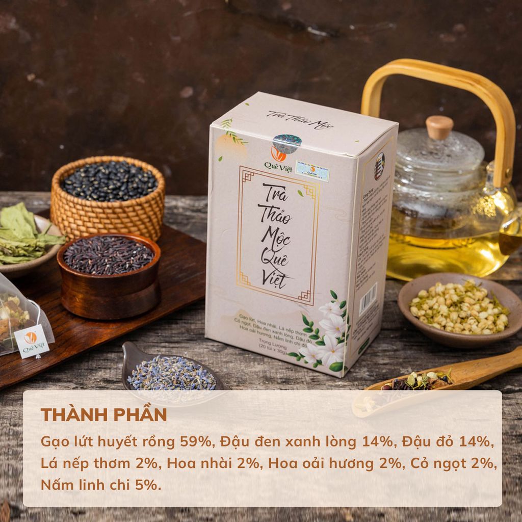 Combo 3 hộp Trà thảo mộc Quê Việt Mát gan, ngủ ngon TẶNG 1 trà Good Lứt 150G - Hộp 600G