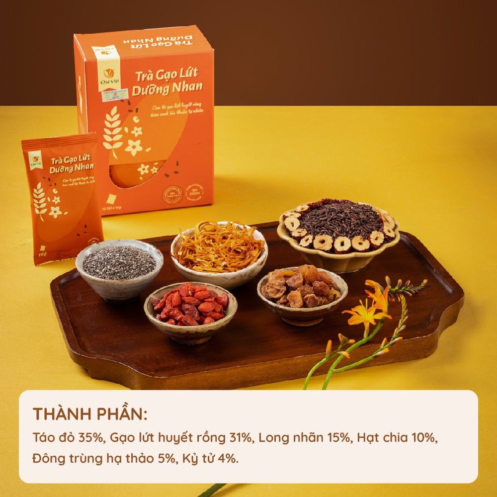 Trà dưỡng nhan đông trùng hạ thảo Quê Việt - Hộp 100G, 200G
